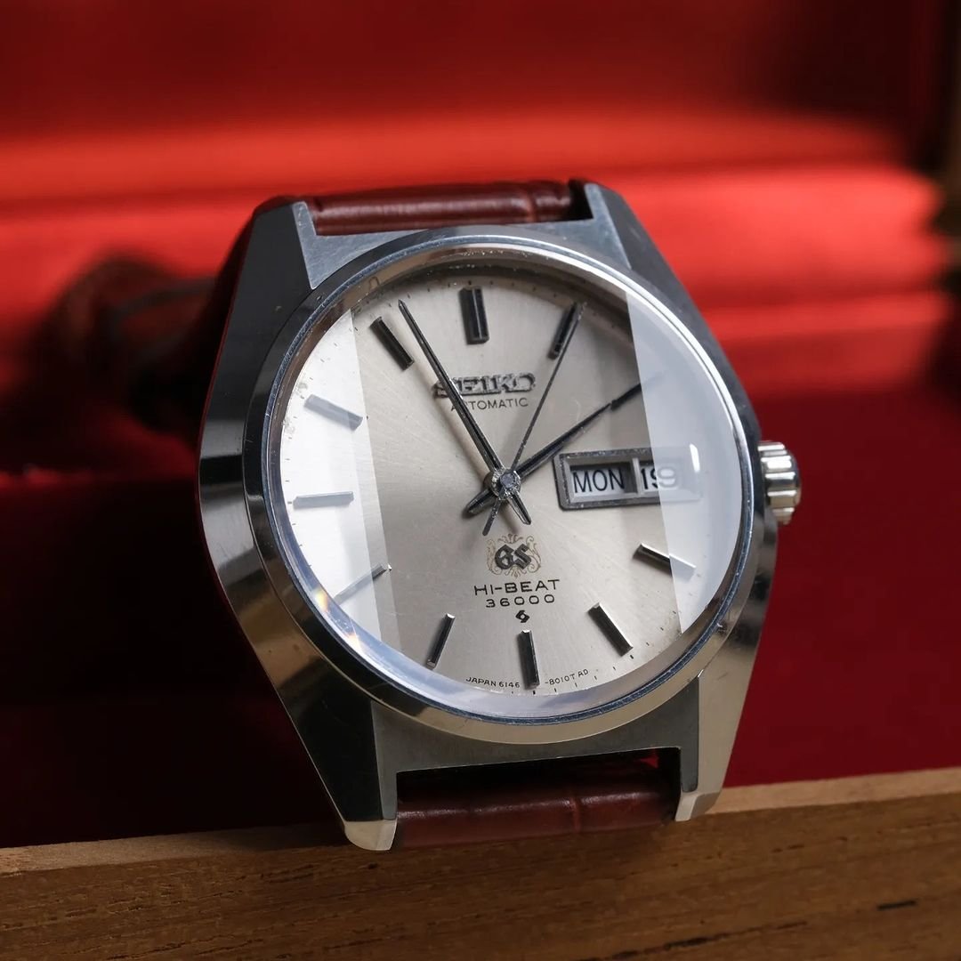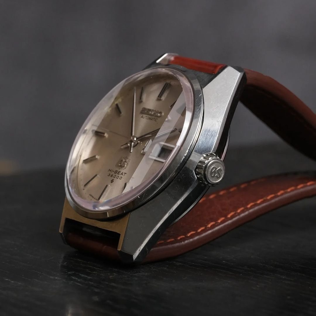 Rare GS 6146 Arabesque model with unique champagne-colored dial, 3-sided sapphire crystal.