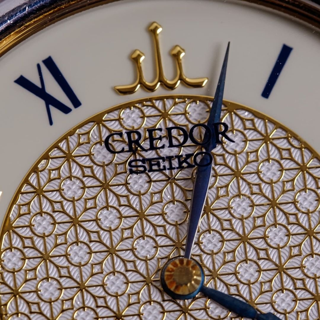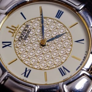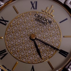 The watch is equipped with sapphire glass. The words “Credor – Seiko” are printed directly on the glass surface.